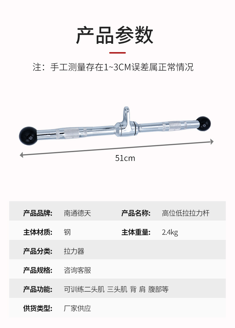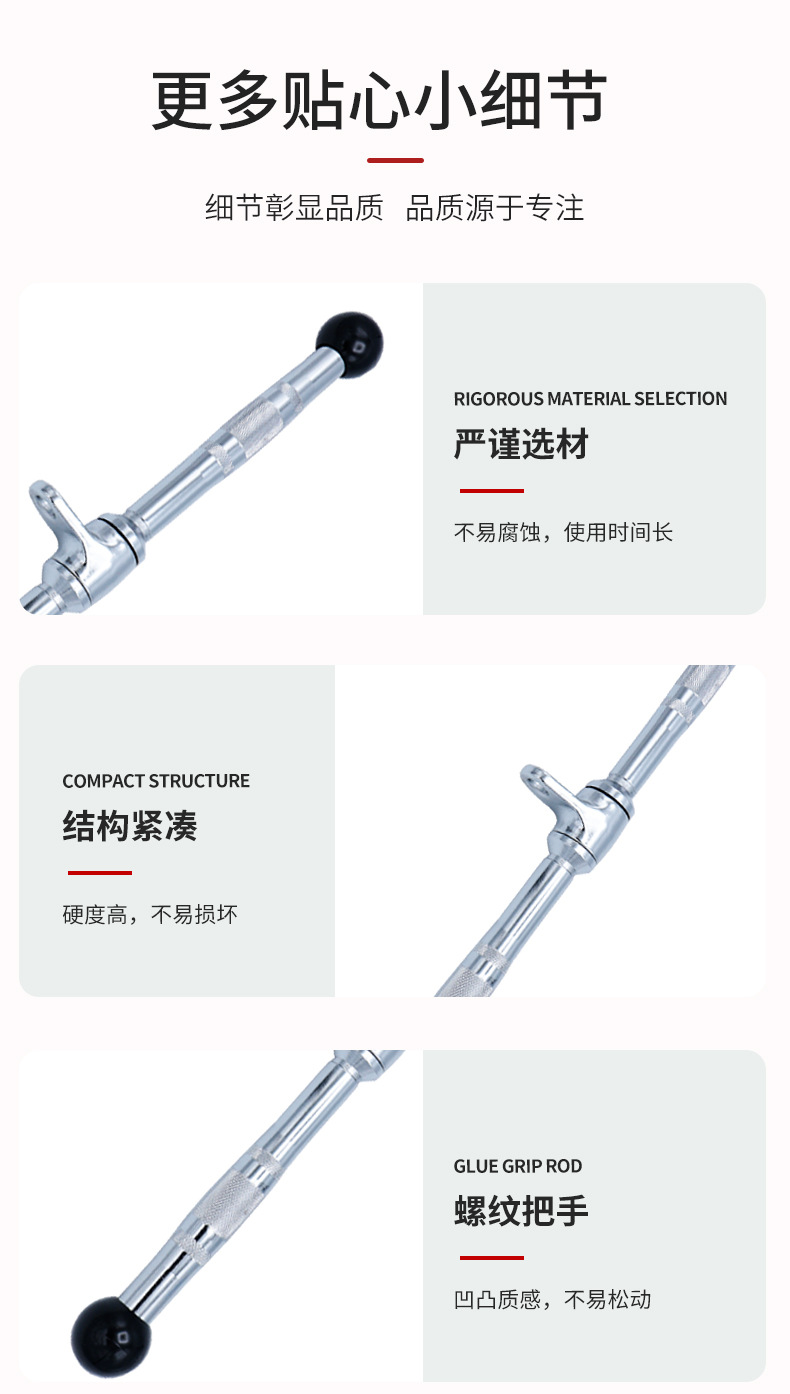 健身器材配件包胶拉杆健身拉力器二头肌弯举短杆高位低拉拉力杆