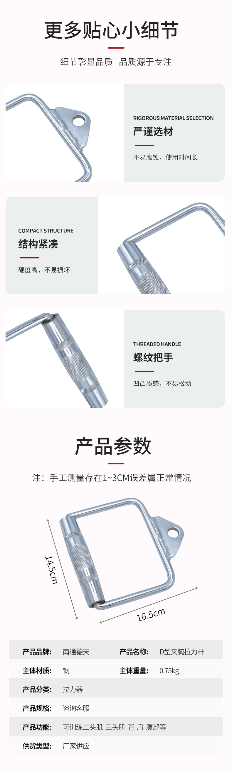 三头肌下压杆健身房拉力器 健身配件健身拉力高位下拉杆低拉划船